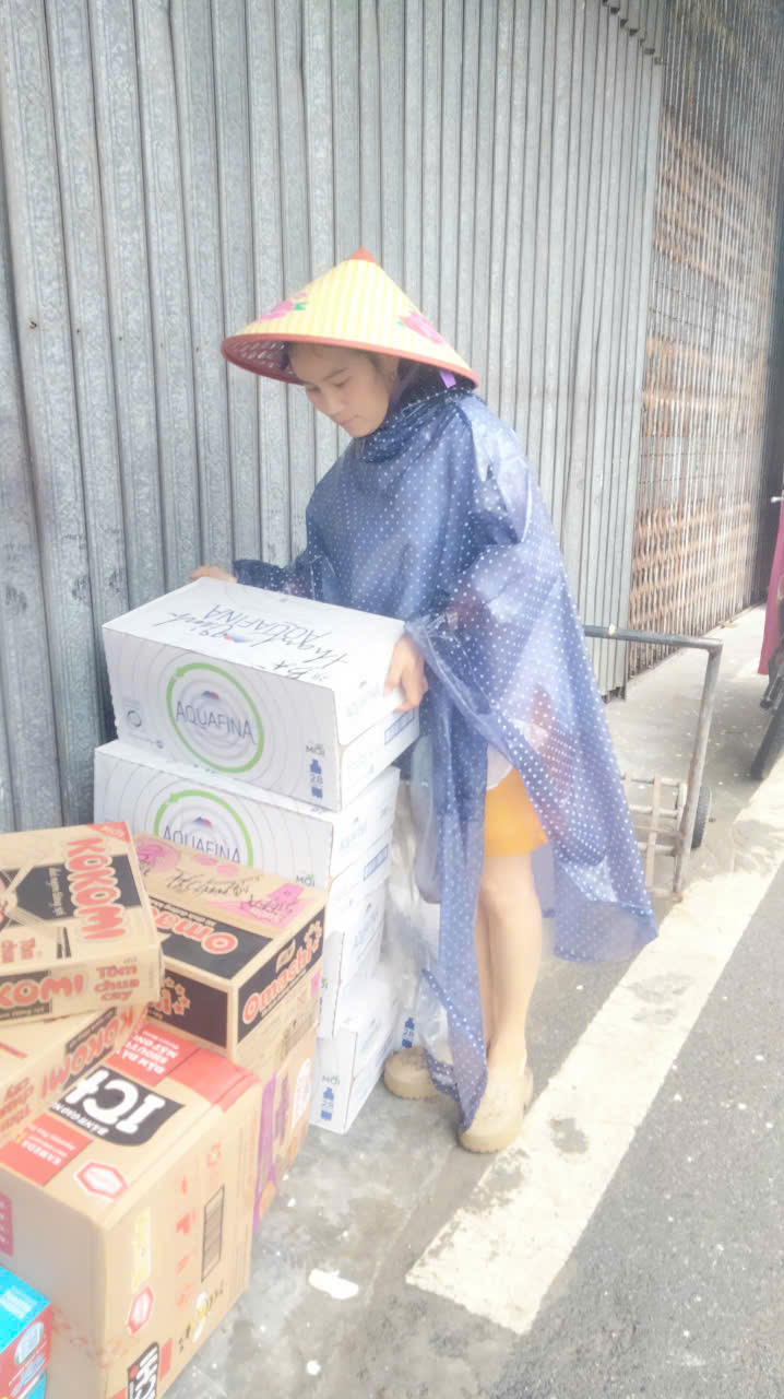 "Chúng tôi còn mang theo nhiều nhu yếu phẩm như mì gói, nước, bánh mì, sữa cho trẻ em… Có người còn tài trợ cháo nấu sẵn, đóng hộp để bà con ăn ngay cho nóng. Ngoài ra có thêm thuốc men, nước muối sinh lý…", chị nói.